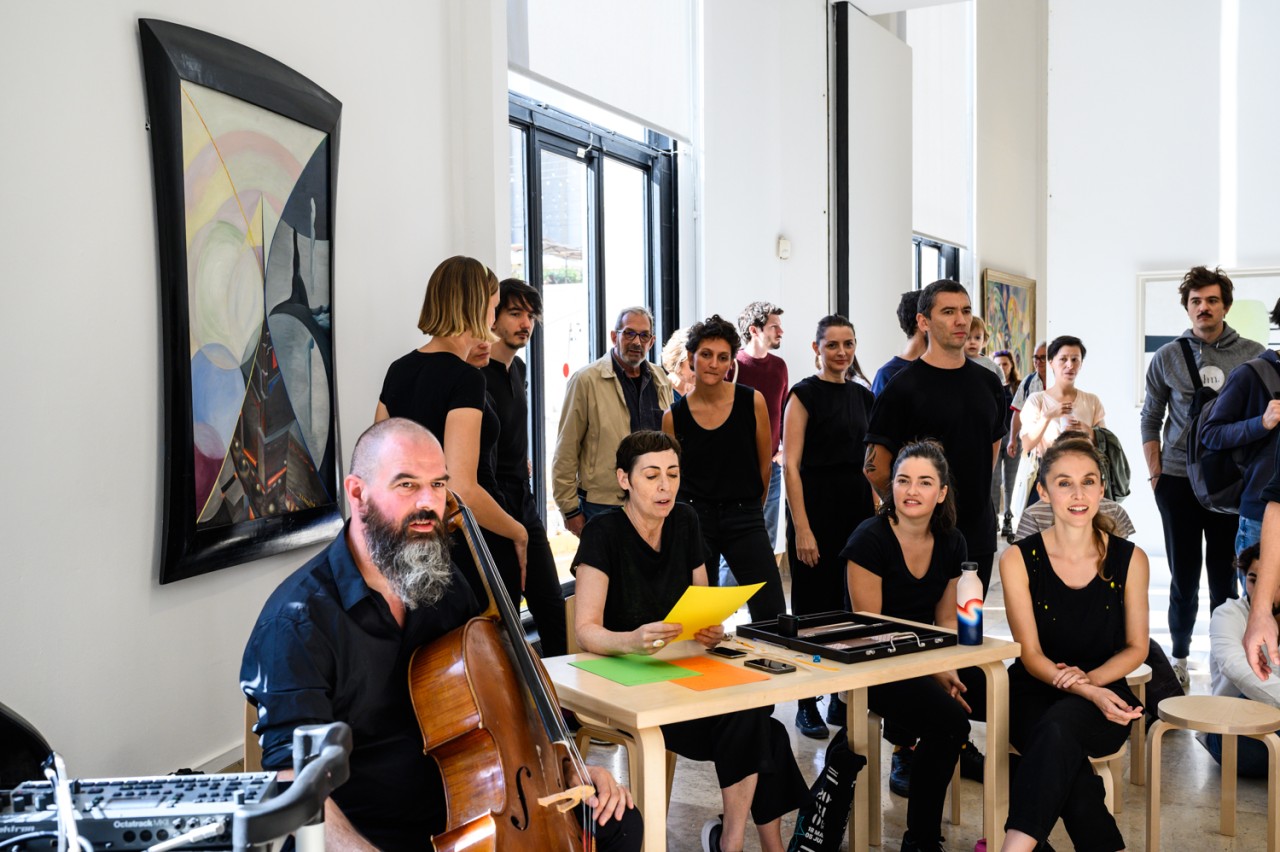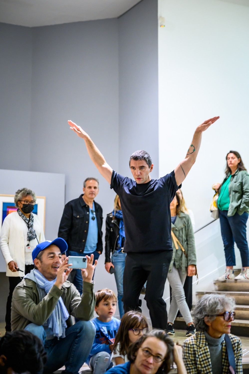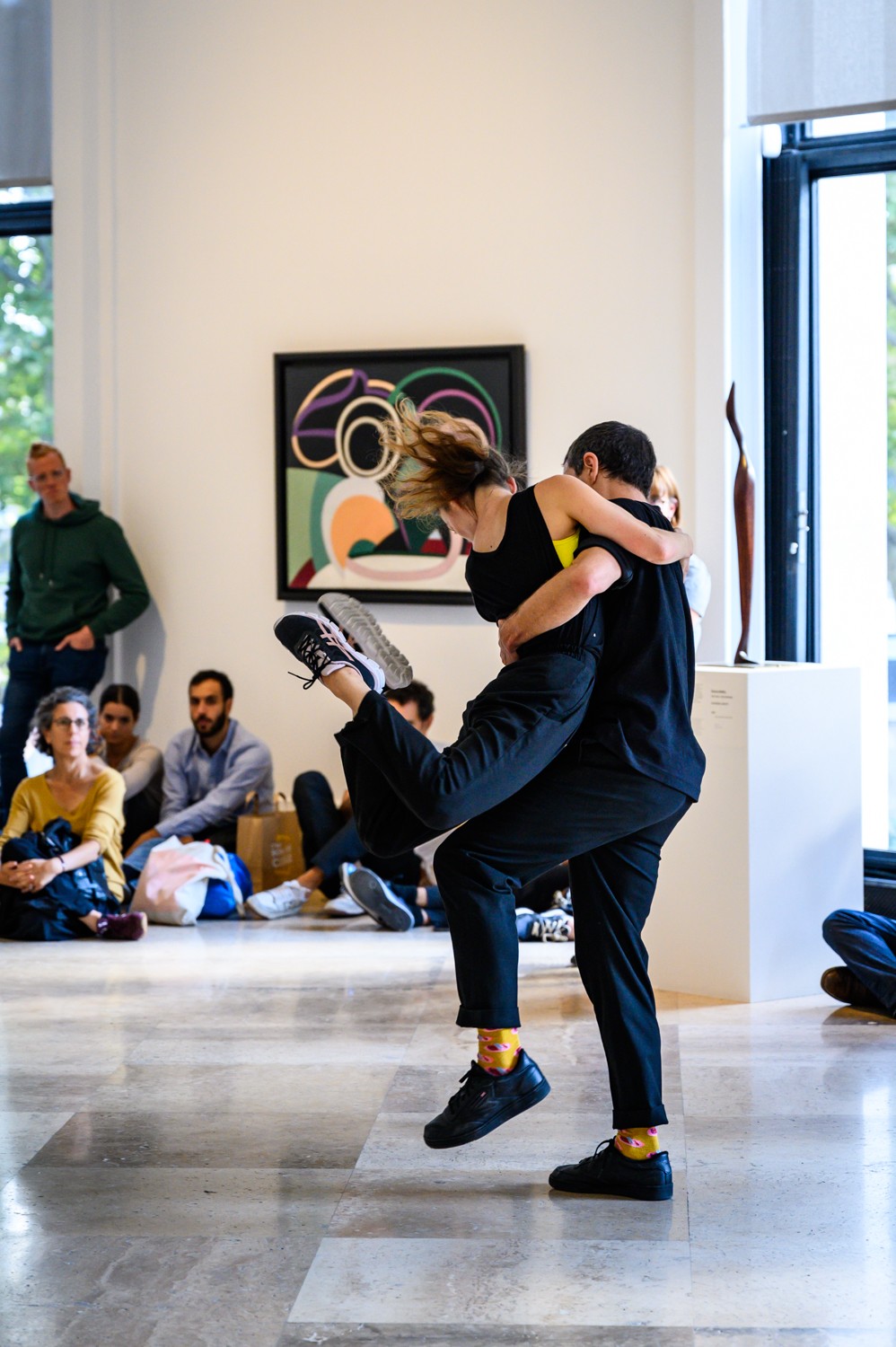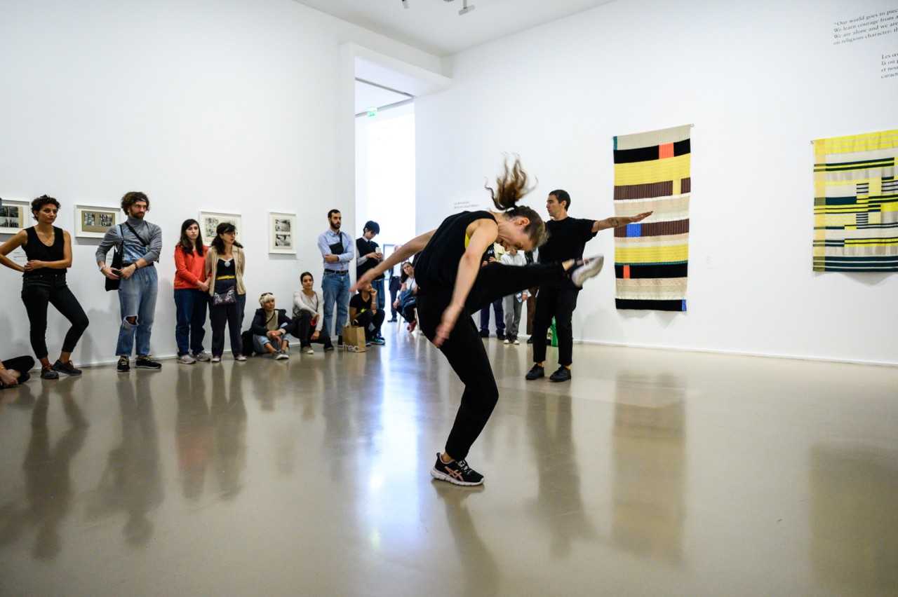 On the occasion of a major donation from the Albers couple’s collection, the Musée d’Art Moderne de Paris invited Anna Chirescu, Ashley Chen, and Cheryl Therrien to create a Cunningham-inspired event, in connection with his years at Black Mountain College. They conceived a free reenactment of one of Merce Cunningham’s earliest performances, Dime a Dance, created at Black Mountain College in 1953—the official founding year of his company.