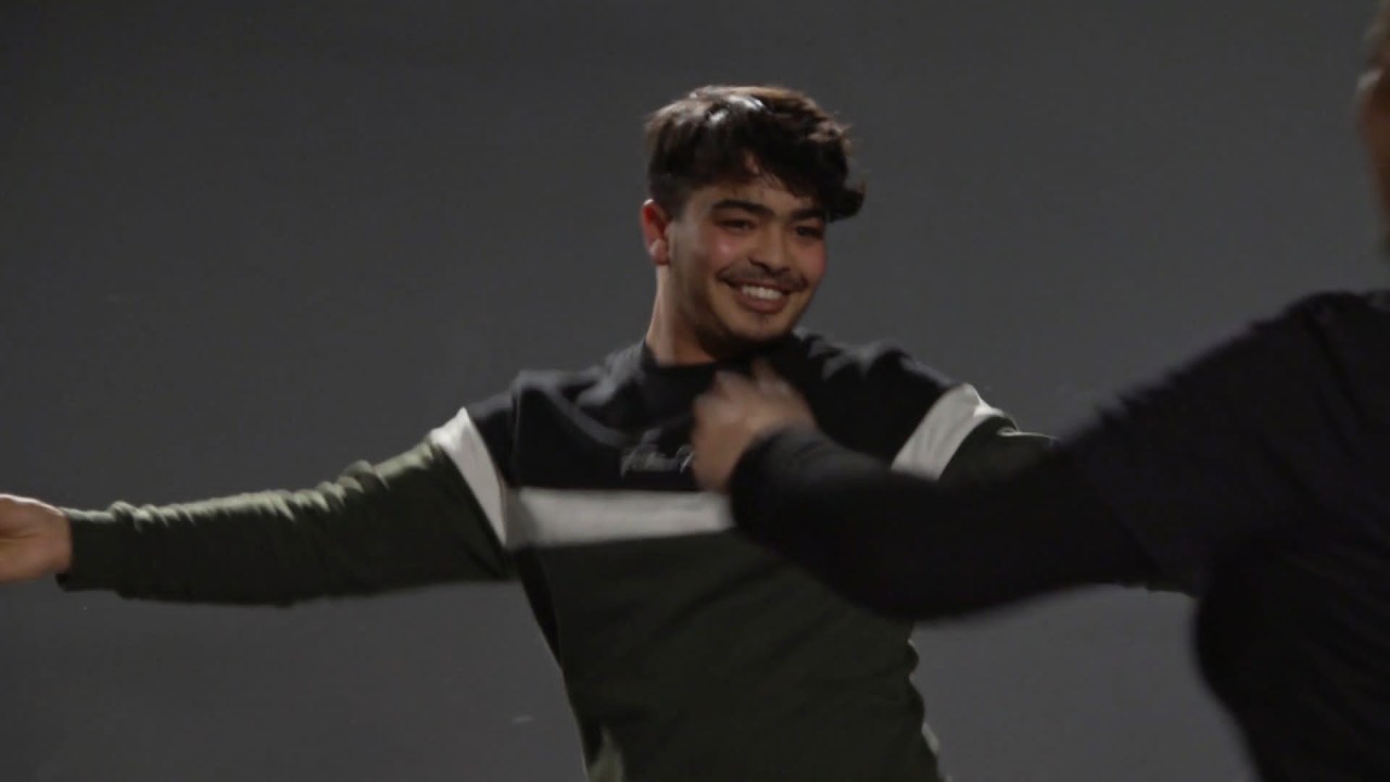 How do we form a chorus? How can an individual bodily motif influence or “contaminate” a group once integrated into it? How do members of a group alternately engage in relationships of tension, balance, and counterbalance with one another? In contrast, the work also explores the idea of distinction: how can the group’s individualities express themselves—through physical contact as well as through distant visual and sonic connections?