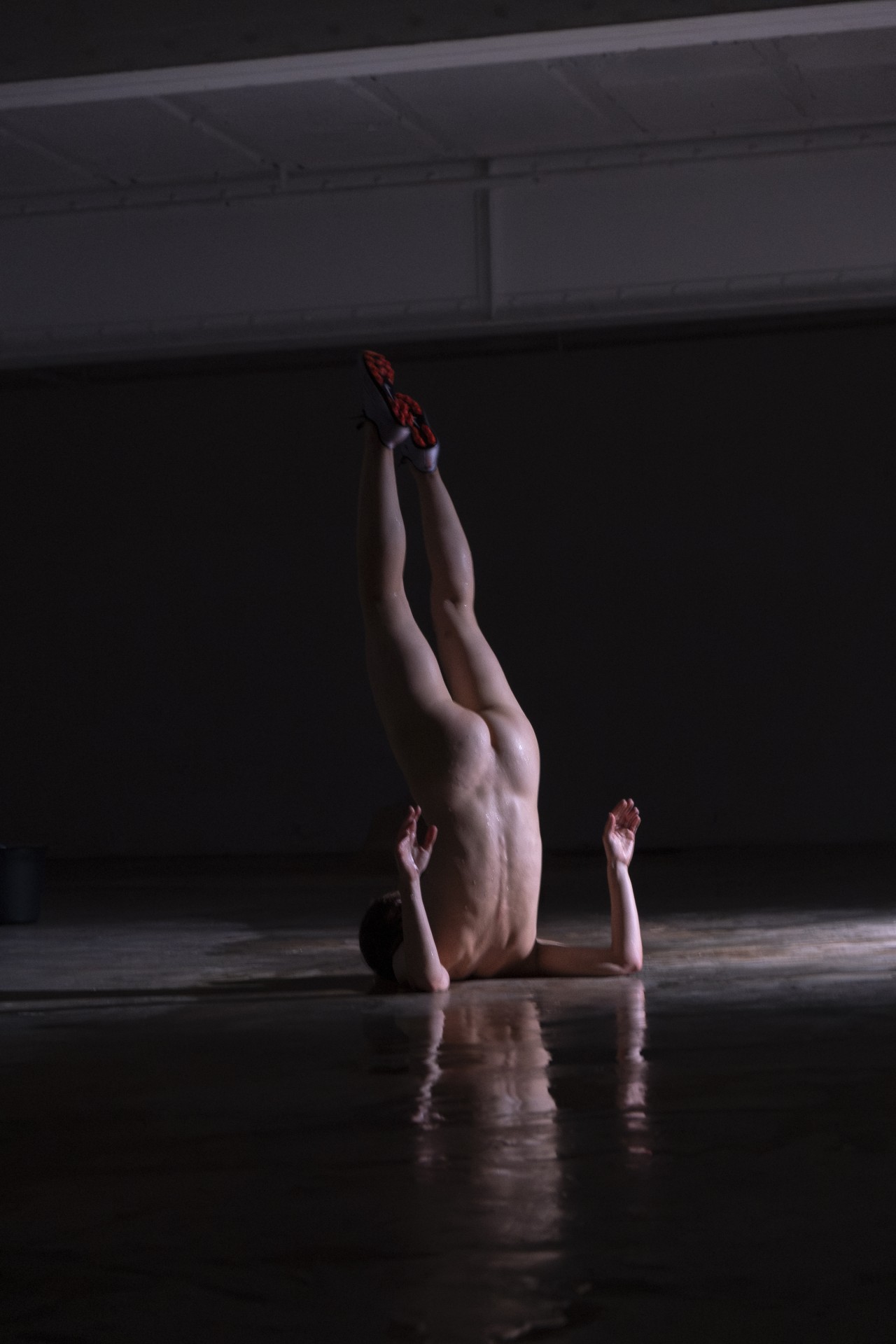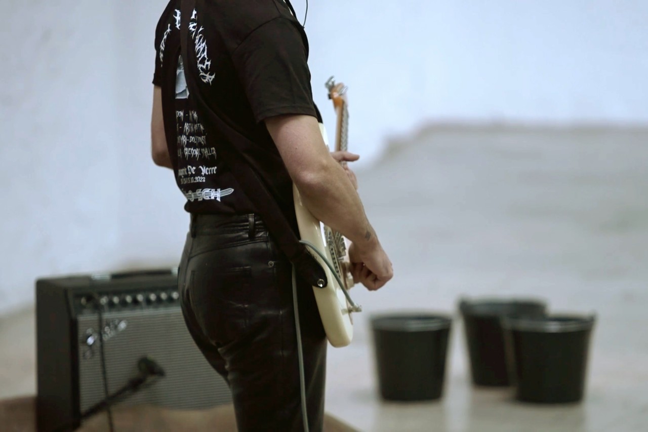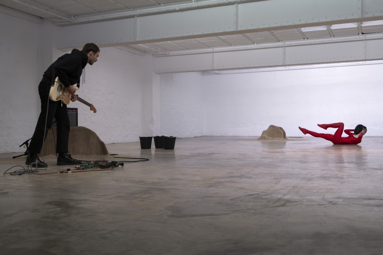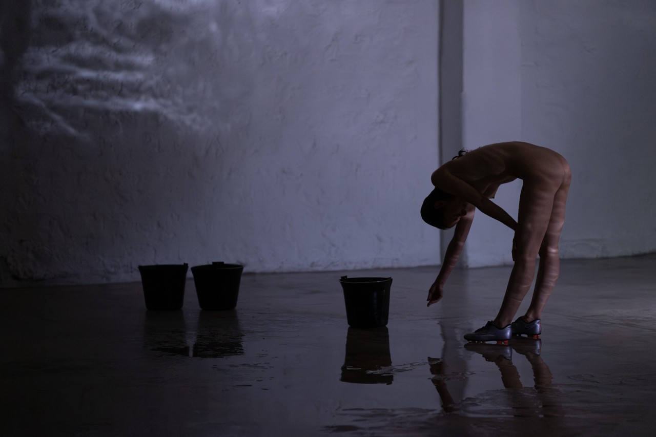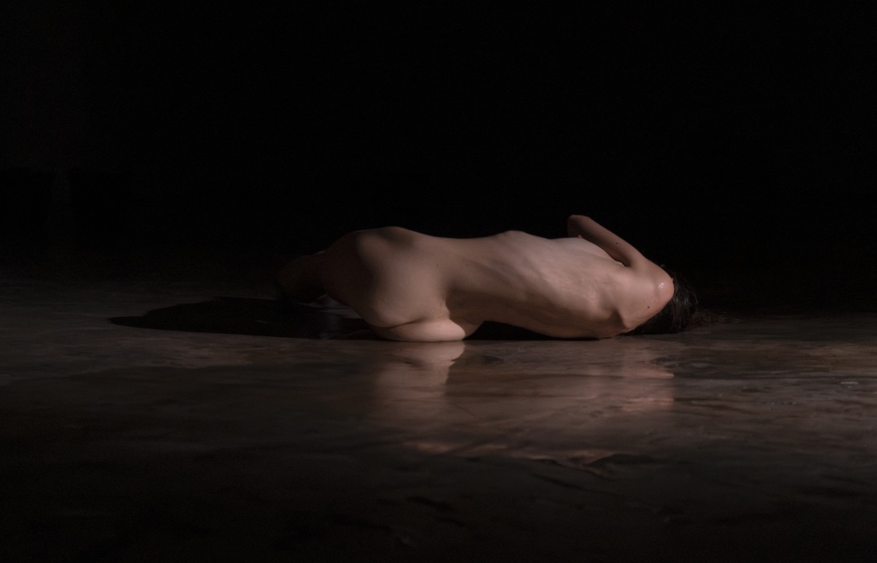Water ordeal, aqua frigida judicium, was a form of medieval divine judgment, in which an accused person - often a woman suspected of witchcraft - was immersed in water. If she sank, she was declared innocent, while if she floated, she was believed to possess magical powers that declared her guilty. Etymologically, the term refers to the notion of trial. The research weaves a parallel between these medieval judgments and contemporary representations of the sporting body. A performance for a dancer and a guitarist, Ordeal by water explores a multitude of relationships to physical constraint, as it traverses a musical landscape of riffs, echoes and sound waves inhabiting space. The body, losing its strictly human form, water, clay and scenographic elements, in their encounters as in their ruptures, shape a moving plastic material in constant metamorphosis.