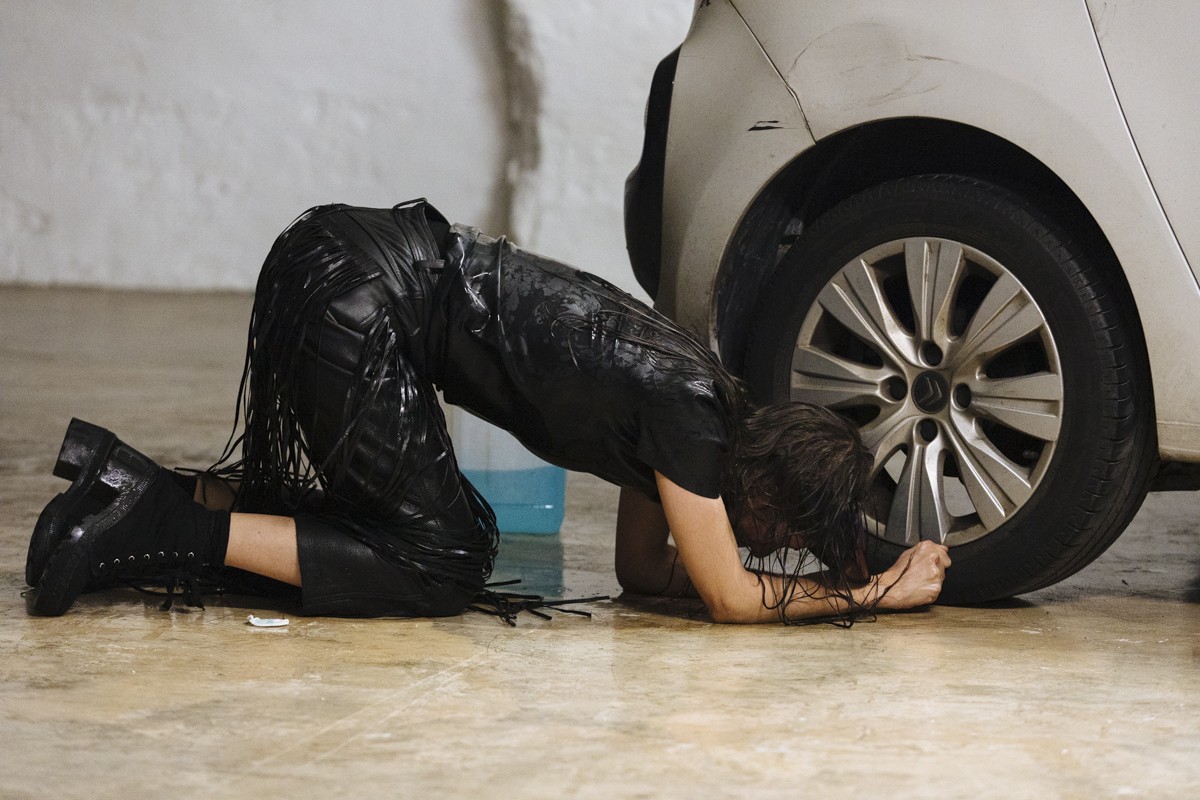 Crash est une variation sur l’accident de voiture. Au cours de ce rendez-vous informel, on tourne autour de cet objet- partenaire de jeu, on s’en inspire par fascination, on s’en éloigne par crainte, on le défie par conviction. On le questionne surtout, puisqu’il est incontournable dans nos vies. Des corps traversent ce face à face, sous les yeux d’une assemblée de spectateurs au plus proche de l’action. Le corps fétichiste, fulgurant et consumériste, qui célèbre et jouit de la voiture dans toute sa violence, le corps victime, entravé, décroissant, révolutionnaire. Enfin le corps robot, incarnation de la machine elle-même. Le « crash », rencontre fatale entre la chair et la technologie, tantôt le pire des cauchemars, tantôt le fantasme ultime. Il incarne aussi peut-être un point de rupture, et on se met à imaginer qu’à l’hécatombe du progrès, l’humain s’oppose.