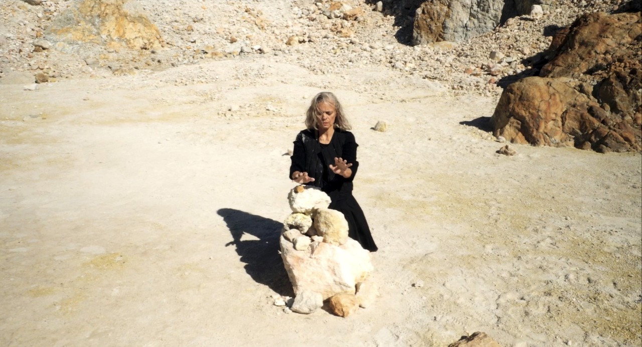 ΕΚΚΡIΝΩ [sécréter] est un film de vidéo danse in situ qui articule corps et paysage. Tourné dans le site volcanique de l’île de Nisyros, dans le Dodécanèse, nous y suivons l’errance dansante d’une femme dans un paysage aride à la recherche d’un lieu de sépulture pour la dépouille d’un jeune homme qui vient de mourir. Le paysage y est traité comme un personnage à part entière, dans sa capacité à influencer les états de corps des performeurs et à altérer les partitions créées au préalable en studio. Cette immersion dans des espaces désertiques se révele au fur et à mesure de la progression du film comme une recherche de reconstruction après la perte, et l’errance comme une quête de soi et de sens. La question de la performativité et de la représentation des émotions face au tragique y est cenrale, notamment dans la création d’une partition de grimaces. Ce matériel se double d’un répertoire vocal : chuchotements, appels lancés dans le vide, comme autant de réponses possibles à la poursuite de sens que cette femme prolonge dans un paysage à l’humanité désertée. Le deuil y devient un moment paradoxal: destructeur évidemment, mais aussi porteur d’espoir de changement, amorçant la création de nouveaux imaginaires et notre histoire collective à venir.