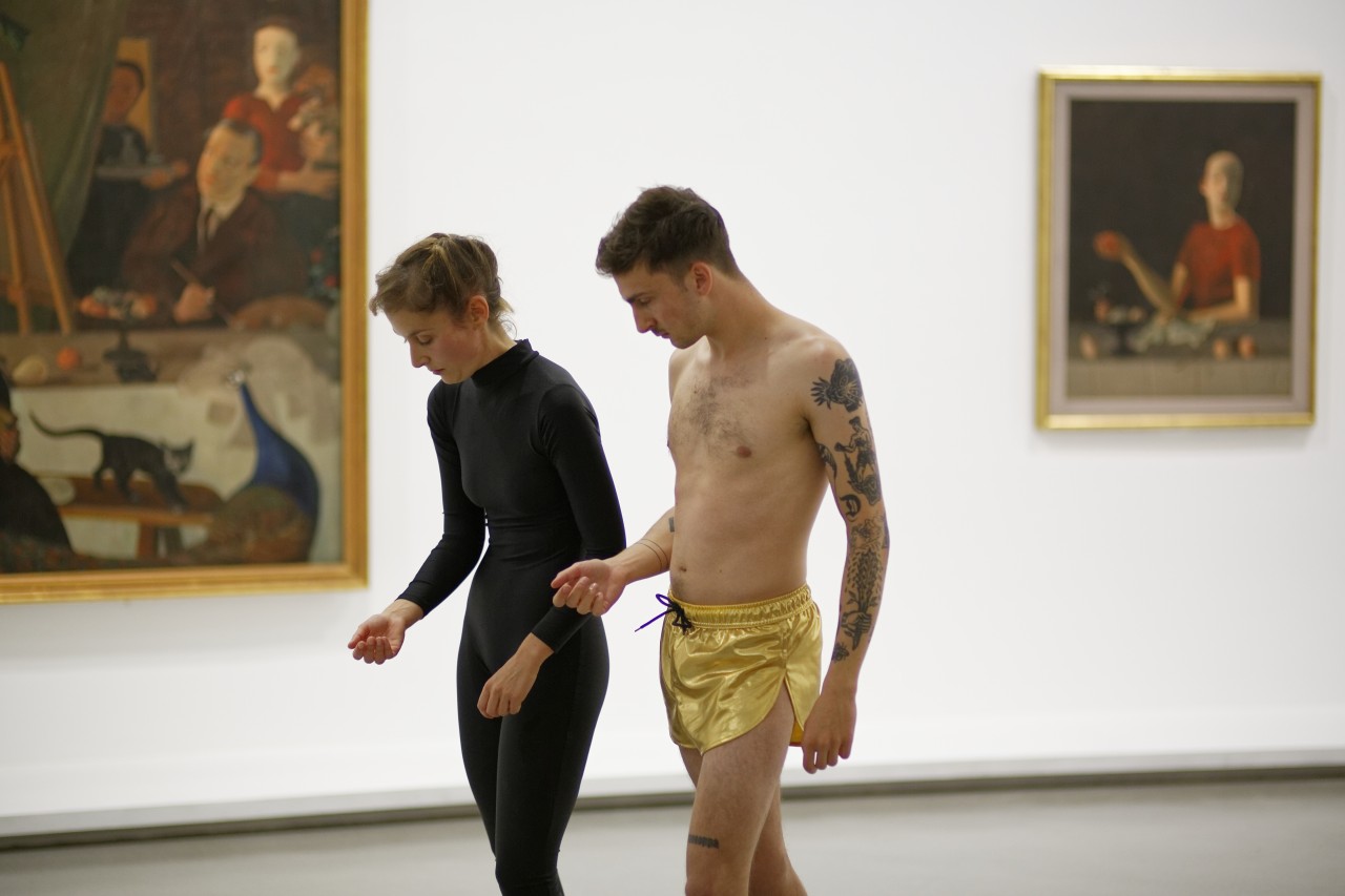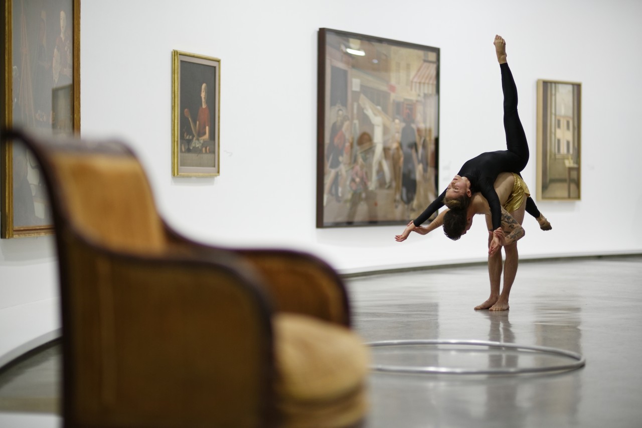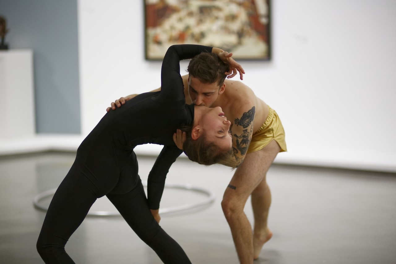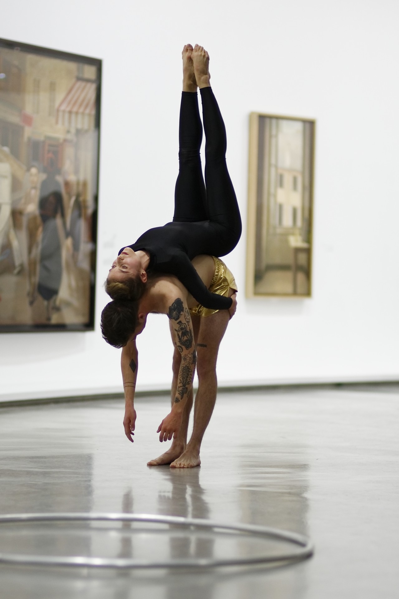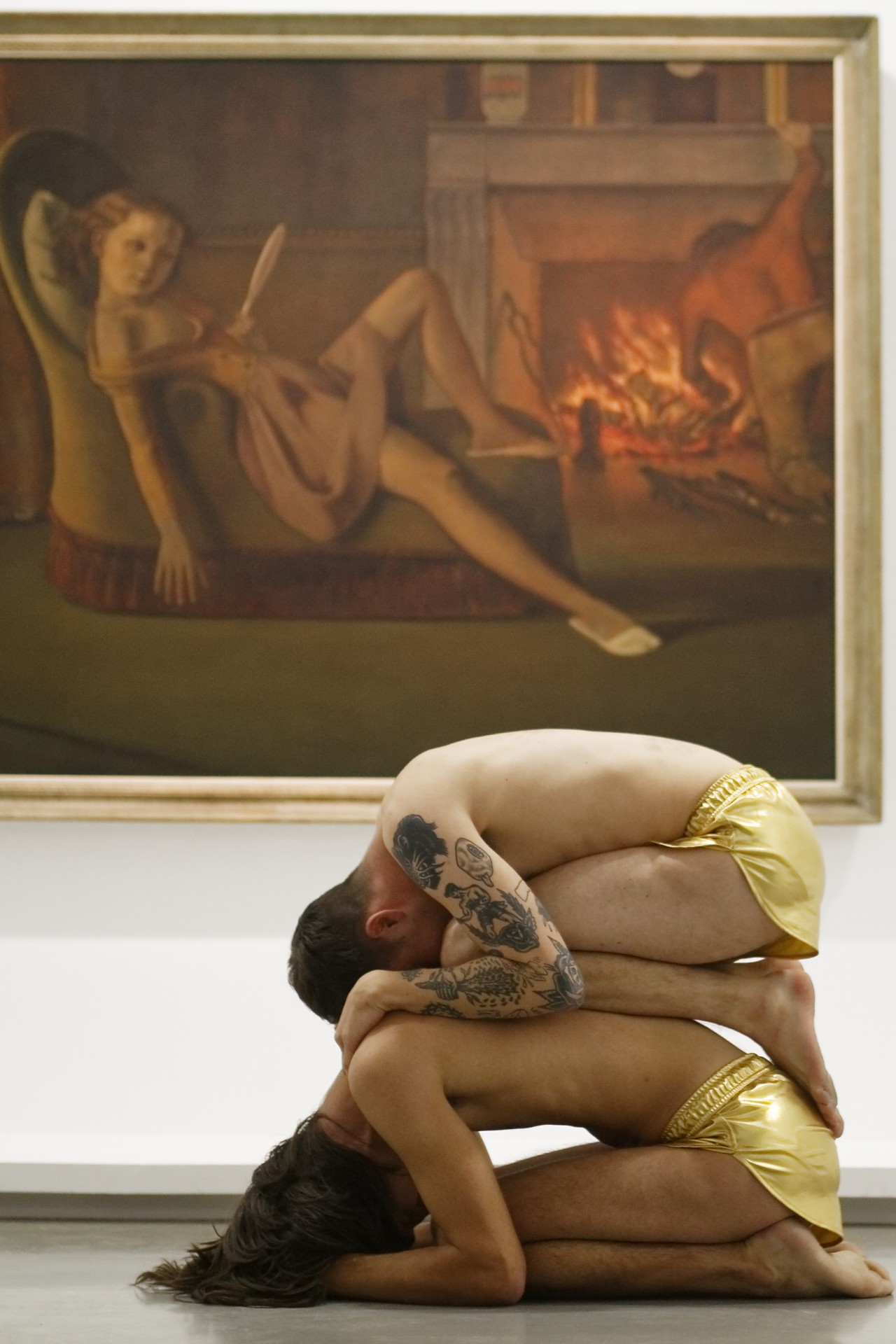 Des jeunes femmes alanguies de Balthus aux Christ en croix, de la figure de l’incube à celle de Saint Sébastien, un répertoire d’images sont amalgamées pour leur intérêt postural a priori de toute pratique du mouvement. Rejouant des mises en formes du corps sportif, esthétique, chorégraphique, la performance questionne la puissance commémorative et suggestive du geste, et toute la charge d’évocation qu’il charrie.